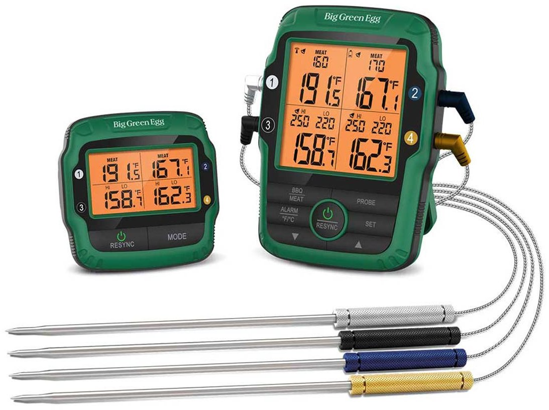 Includes four color-coded stainless temperature probes for multiple food readings and the temperature inside the EGG